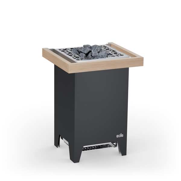 Der EOS Cubo 2 zeichet sich durch seine kompakte Bauweise mit nur ca. 39 cm Tiefe. Dank flacher Rückseite und der inklusiven Designrückwand eignet sich der Saunaofen auch zur Aufstellung vor Glasflächen. Zusätzlich ist der Ofen sehr servicefreundlich konstruiert: Heizelemente ohne Kontakt mit den Steinen – ein Austausch der Heizstäbe ohne Entnahme der Steine möglich ist. Optimiertes Verhältnis von Strahlungswärme und Luftkonvektion durch angepasste Steinmenge.