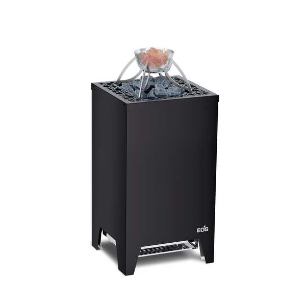 Der EOS Cubo 2 zeichet sich durch seine kompakte Bauweise mit nur ca. 39 cm Tiefe. Dank flacher Rückseite und der inklusiven Designrückwand eignet sich der Saunaofen auch zur Aufstellung vor Glasflächen. Zusätzlich ist der Ofen sehr servicefreundlich konstruiert: Heizelemente ohne Kontakt mit den Steinen – ein Austausch der Heizstäbe ohne Entnahme der Steine möglich ist. Optimiertes Verhältnis von Strahlungswärme und Luftkonvektion durch angepasste Steinmenge.